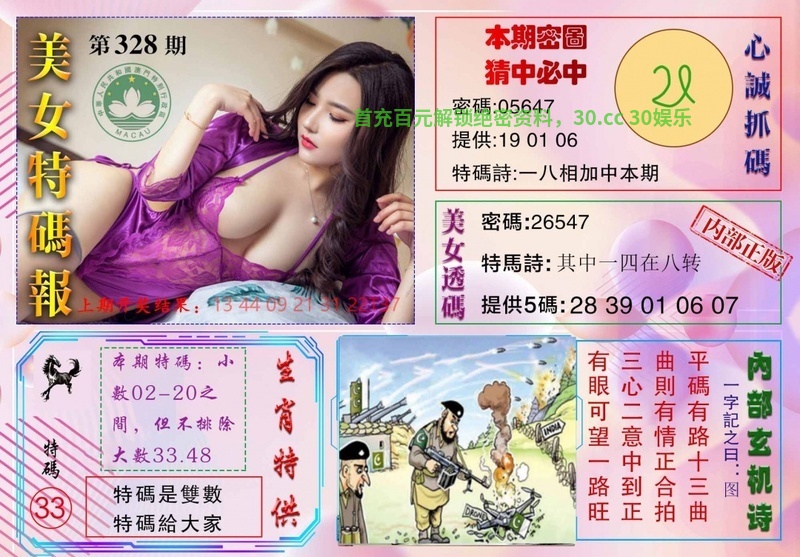 赚钱就需要一份好料,精准公式计算,赌彩必备绝对极品,实实在在让你稳赚!最好的资料都是要斟酌再斟酌,大家敬请关注网站更新!